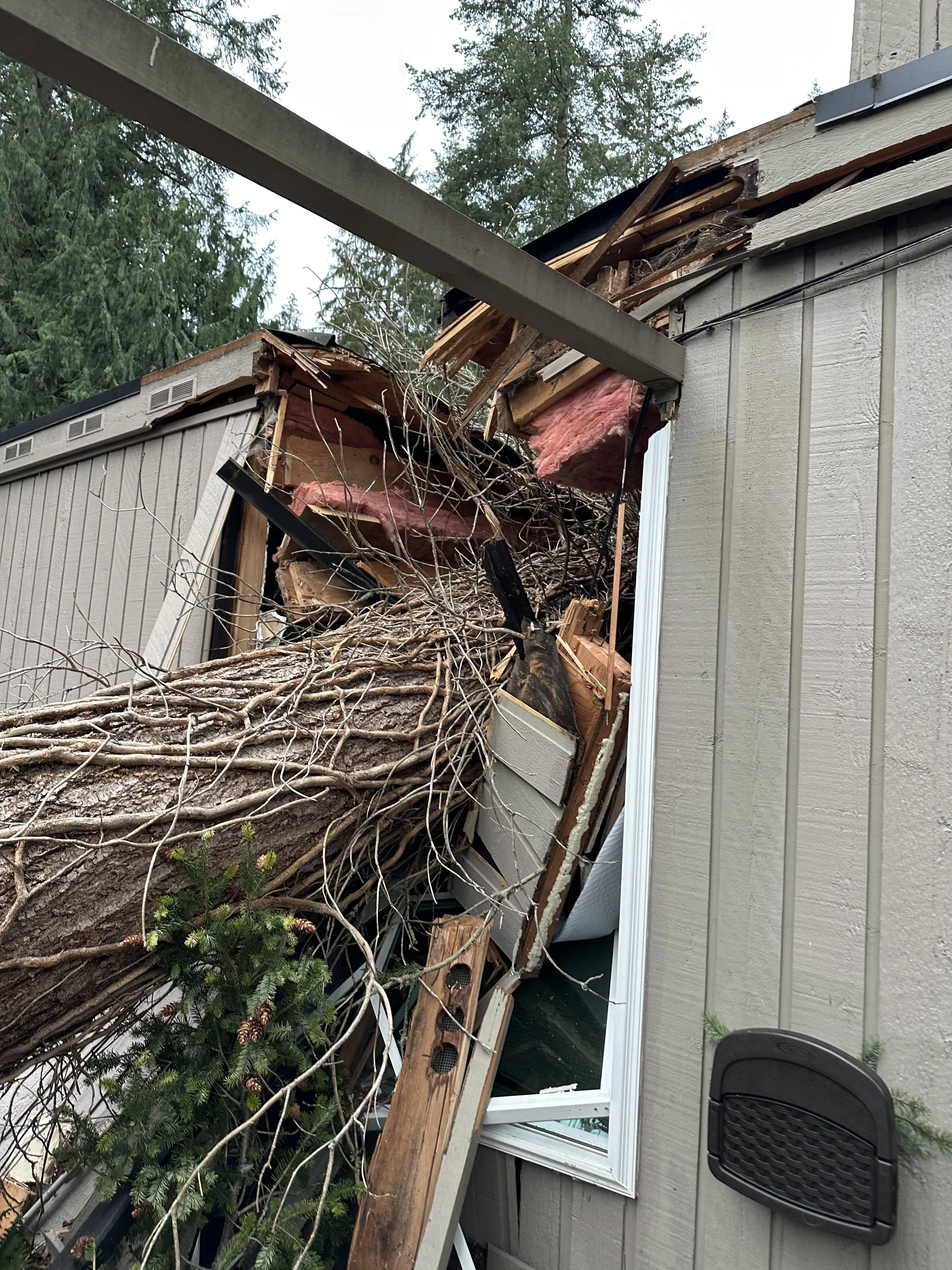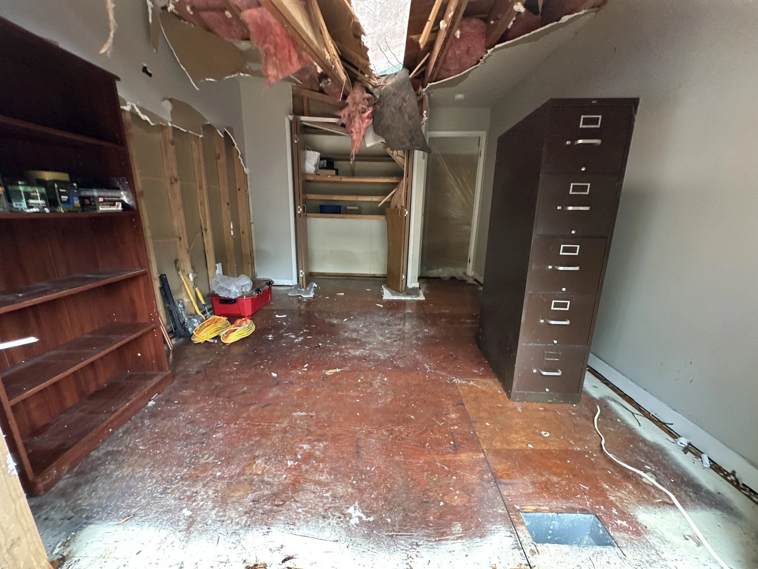 Pladson Construction repaired extensive storm damage after a tree fell through a client’s home during the 2024 Bomb Cyclone, breaking a water line and flooding the interior. The restoration included new framing, a torch-down roof, and carefully crafted interior finishes, all matched as closely as possible to the original conditions. The project restored both the structure and the home’s aesthetic, ensuring durability, safety, and a seamless return to normal for the homeowner.